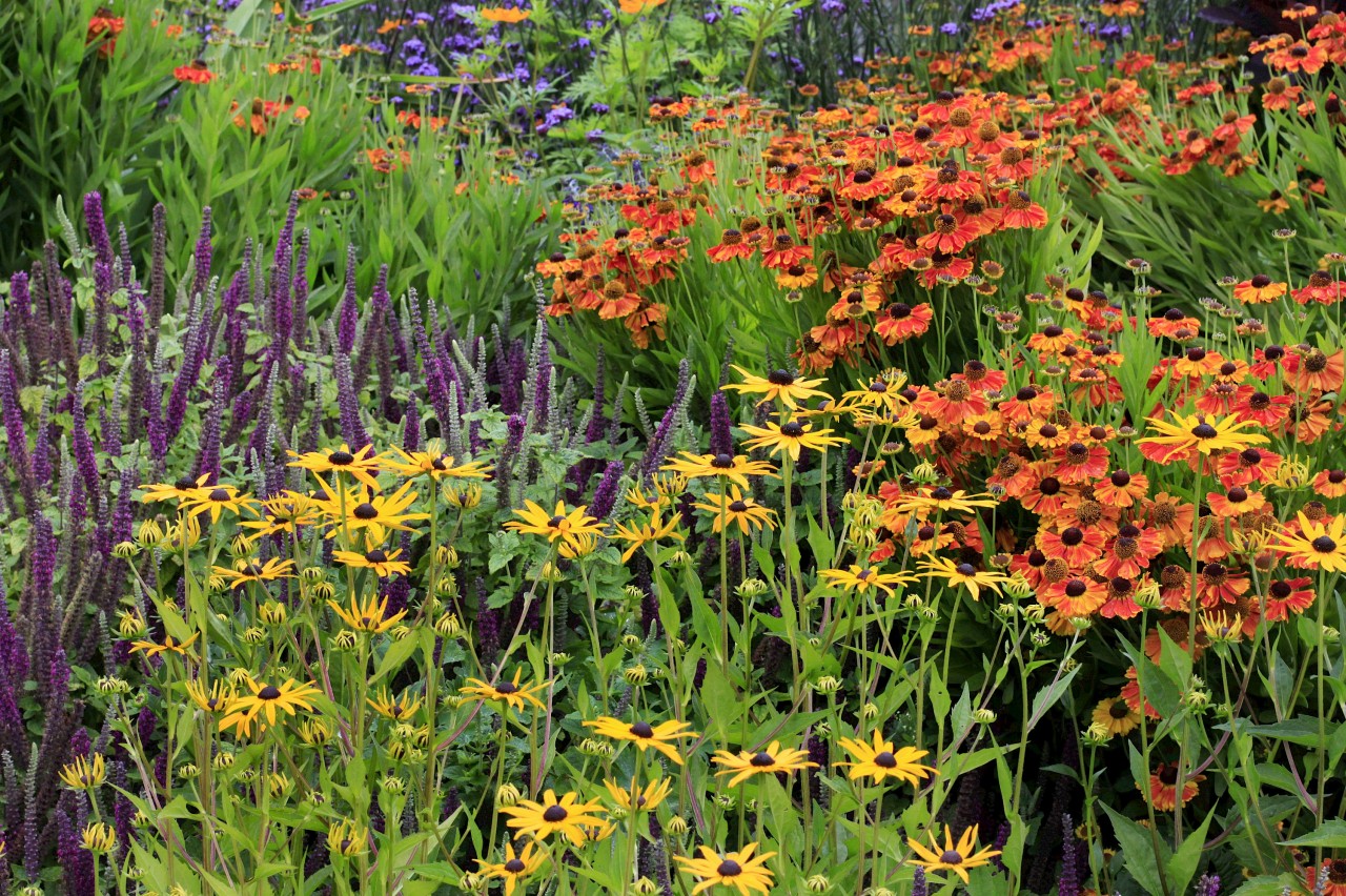 A garden of single colour really makes a big impact. The most famous of which is probably the white garden at Sissinghurst, Kent. Technically its two colour as it is virtually impossible to have a garden without any green colour. The exception to this is an all green garden which uses different shades of green and foliage types to great interest.
